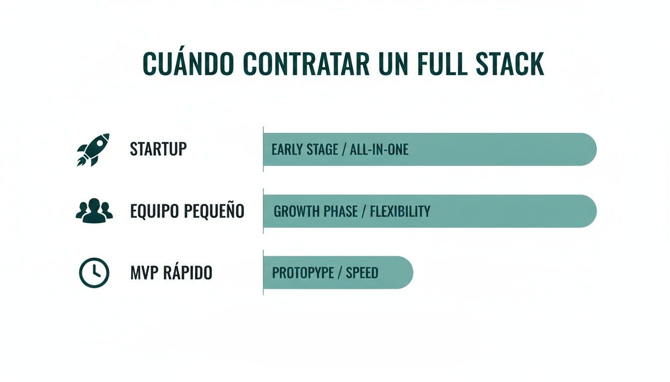 Contratar a un desarrollador full stack no siempre es la mejor opción. Su valor es máximo cuando encaja en el momento adecuado del proyecto.
