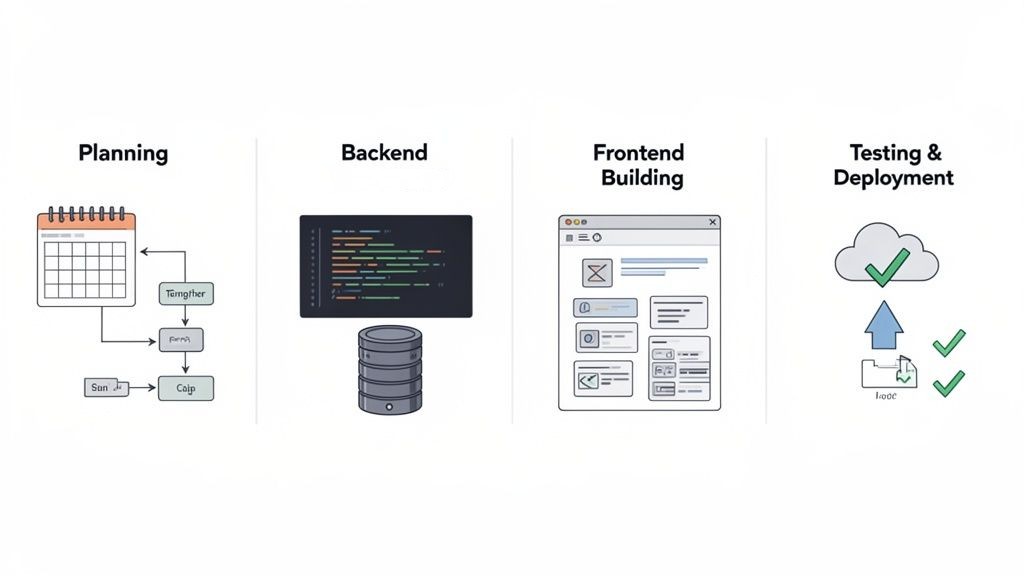 Para encontrar al desarrollador fullstack adecuado, el proceso debe ir más allá de revisar una lista de tecnologías en un CV. La clave es evaluar su capacidad para resolver problemas de forma integral. Tu oferta de empleo debe describir los retos de negocio que ayudará a resolver; esto atrae a perfiles con mentalidad de producto, no a meros ejecutores.